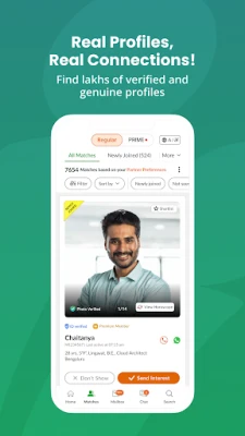 கன்னடர்களுக்கான இந்தியாவின் மிகப்பெரிய துணை தேடும் தளமான கன்னட மேட்ரிமோனியில், தினந்தோறும் ஆயிரக்கணக்கானோர் பதிவு செய்து தங்கள் விருப்பத்திற்குரிய வாழ்க்கை துணையைத் தேடுகின்றனர். இங்கு இலட்சக்கணக்கான சுயவிவரங்கள் உள்ளன, உங்கள் எதிர்பார்ப்புகளுக்கு ஏற்ற உலகெங்கிலும் உள்ள தகுதியான ஒற்றையர்களுடன் நீங்கள் இணையலாம். கட்டணமில்லாப் பதிவின் மூலம், உங்கள் சுயவிவரத்தை உருவாக்கி, கோடிக்கணக்கான பொருத்தமான துணைகளை உலாவ முடியும். எங்கள் சக்திவாய்ந்த செயற்கை நுண்ணறிவு அடிப்படையிலான MIMA™ அமைப்பு, உங்களுக்கு மிகவும் இணக்கமான பரிந்துரைகளை வழங்குகிறது. புதிய பொருத்தங்கள், உங்கள் சுயவிவரத்தில் ஆர்வம் காட்டுவோர் அல்லது பதில் அளிப்போர் குறித்து உங்கள் கைபேசியில் உடனடியாக அறிவிப்புகளைப் பெறுவீர்கள். மேலும், மேம்பட்ட வடிகட்டிகள் மூலம் நகரம், கல்வி, தொழில், இருப்பிடம் போன்ற பல அம்சங்களின் அடிப்படையில் உங்கள் துணையைத் துல்லியமாகக் கண்டறியலாம்.