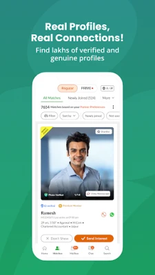 உங்களின் வாழ்க்கை துணையை தேடும் பயணத்தை எளிதாக்க Marwadi Matrimony பல சிறப்பு அம்சங்களை வழங்குகிறது. இலவசமாக சுயவிவரத்தை உருவாக்கி, லட்சக்கணக்கான வரன் சுயவிவரங்களை ஆராயலாம். MIMA™ எனப்படும் எங்களின் சக்திவாய்ந்த செயற்கை நுண்ணறிவு சார்ந்த பொருத்தம் காணும் முறை மூலம், உங்களுக்கு மிகவும் பொருத்தமான பரிந்துரைகளைப் பெறலாம். புதிய வரன்கள் மற்றும் ஆர்வமுள்ளவர்கள் குறித்து சரியான நேரத்தில் அறிவிப்புகளையும் பெறலாம். மேம்பட்ட வடிகட்டிகள் மூலம் நகரம், கல்வி, தொழில் போன்ற பல அம்சங்களின் அடிப்படையில் உங்கள் துணையை தேர்வு செய்யலாம். பிரீமியம் உறுப்பினராக, பாதுகாப்பான அரட்டை மற்றும் குரல் அழைப்பு அம்சங்கள் வழியாக வரன்களுடன் எந்த நேரத்திலும், எங்கும் தொடர்பு கொள்ளலாம். அடையாள சரிபார்ப்பு செய்யப்பட்ட நம்பகமான சுயவிவரங்களை Marwadi Matrimony "Prime" மூலம் அணுகலாம், மேலும் உங்களின் சுயவிவரத்தை பிரீமியம் பிரிவில் இடம்பெறச் செய்யலாம். வரன்களின் இருப்பிடம், கல்வி, ஜாதகம் போன்ற முழுமையான தகவல்களையும் அறியலாம். உங்களின் பாதுகாப்பு மற்றும் தனியுரிமையை Marwadi Matrimony முழுமையாக மதிக்கிறது. SecureConnect® அம்சம் மூலம் உங்கள் மொபைல் எண்ணை வெளிப்படுத்தாமல் வரன்களிடமிருந்து அழைப்புகளைப் பெற முடியும்.